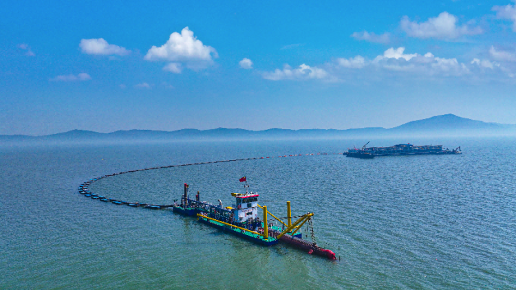 图为无锡市水利局与中交天航局联合打造的一体化清淤平台