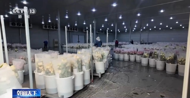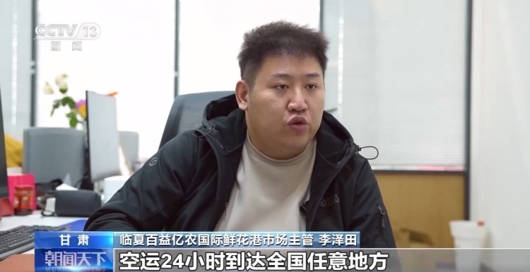 甘肃临夏百益亿农国际鲜花港市场主管 李泽田:通过冷链物流的方式,空运24小时到达全国任意地方,陆运48小时到达全国任意地方。