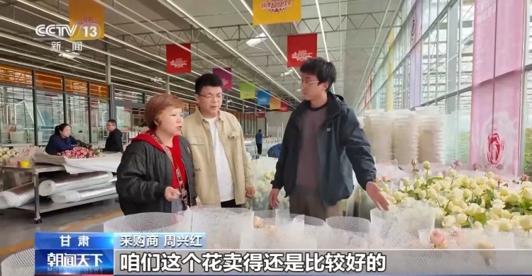 通过科学种植,劣势变优势,临夏鲜花港的玫瑰全年常开不败,还种植出一些独有的品种,年产7000万枝高品质鲜切花。为了对接客户,鲜花港还开起了直播间,农民们也变身为主播,就在记者采访期间,不时有回头客前来批量采购。