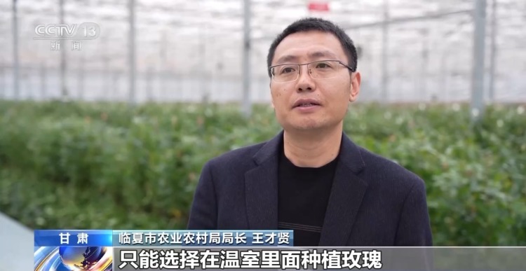 甘肃临夏农业农村局局长 王才贤:玫瑰是一个高产值的作物,我们这个地方的海拔和光照适合玫瑰生长,但是它又缺水干旱,冬季比较寒冷。要解决这个问题,只能选择在温室里面种植玫瑰。