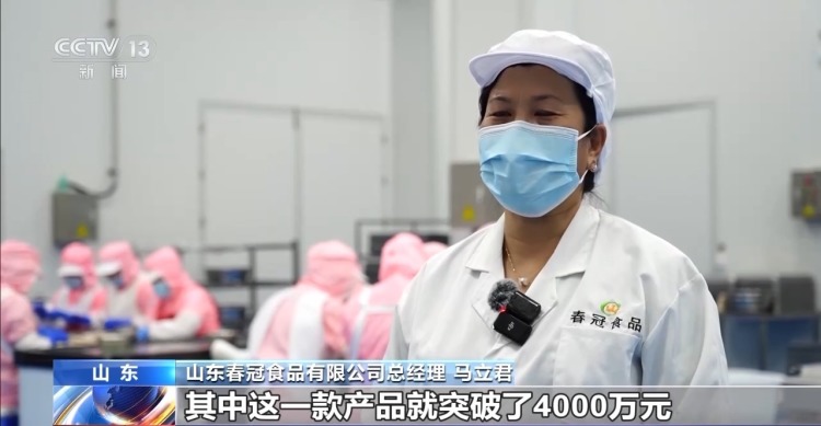 山东春冠食品有限公司总经理 马立君:今年1月份到现在,我们的销售总值已经超过了8000万,其中这一款产品就突破了4000万,同比增长32%。
