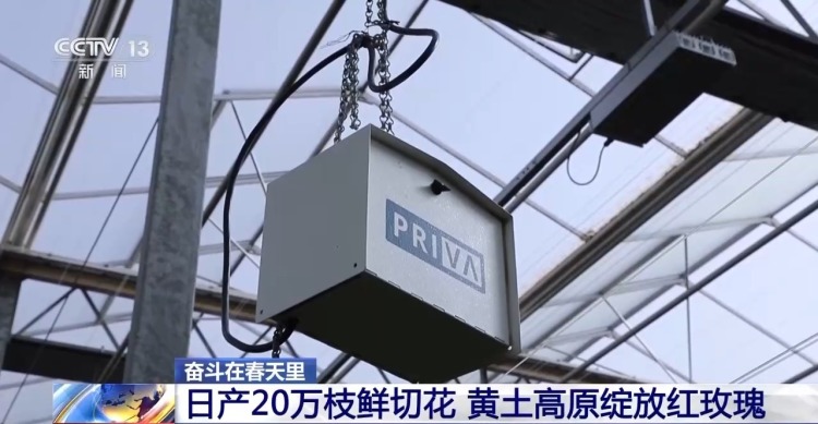 临夏百益亿农国际鲜花港生产主管 张晓亮:一滴一滴地滴进去,跟输液一样,一方面是用水比较少,一方面是用肥料也比较精准,使我们在这个干旱地区种植玫瑰这样的品种完全可行。