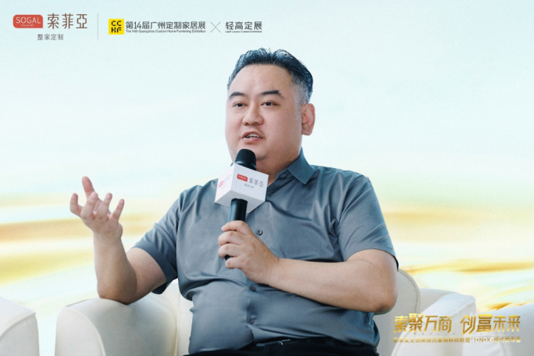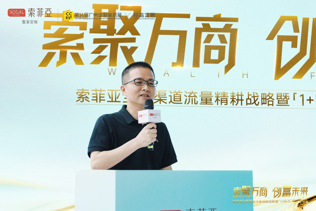 广东省定制家居协会秘书长曾勇为发布会致辞,他指出,索菲亚「1+N+X」模式的发布,不仅是渠道创新,更是从底层逻辑重构行业生态,他从终端流量、产业生态、生态协同3大维度抽丝剥茧,阐释了「1+N+X」模式的核心价值。未来家居存量市场的竞争,不再是企业间的单点对决,而是用户信任的竞争、生态协同效率的竞争。