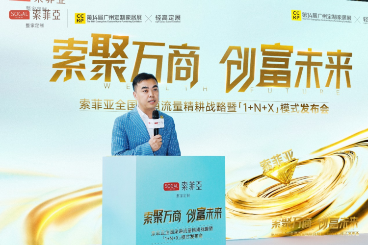 3月27日,以“索聚万商·创富未来”为主题的索菲亚全国渠道流量精耕战略暨「1+N+X」模式发布会于第14届广州定制家居展上重磅发布。