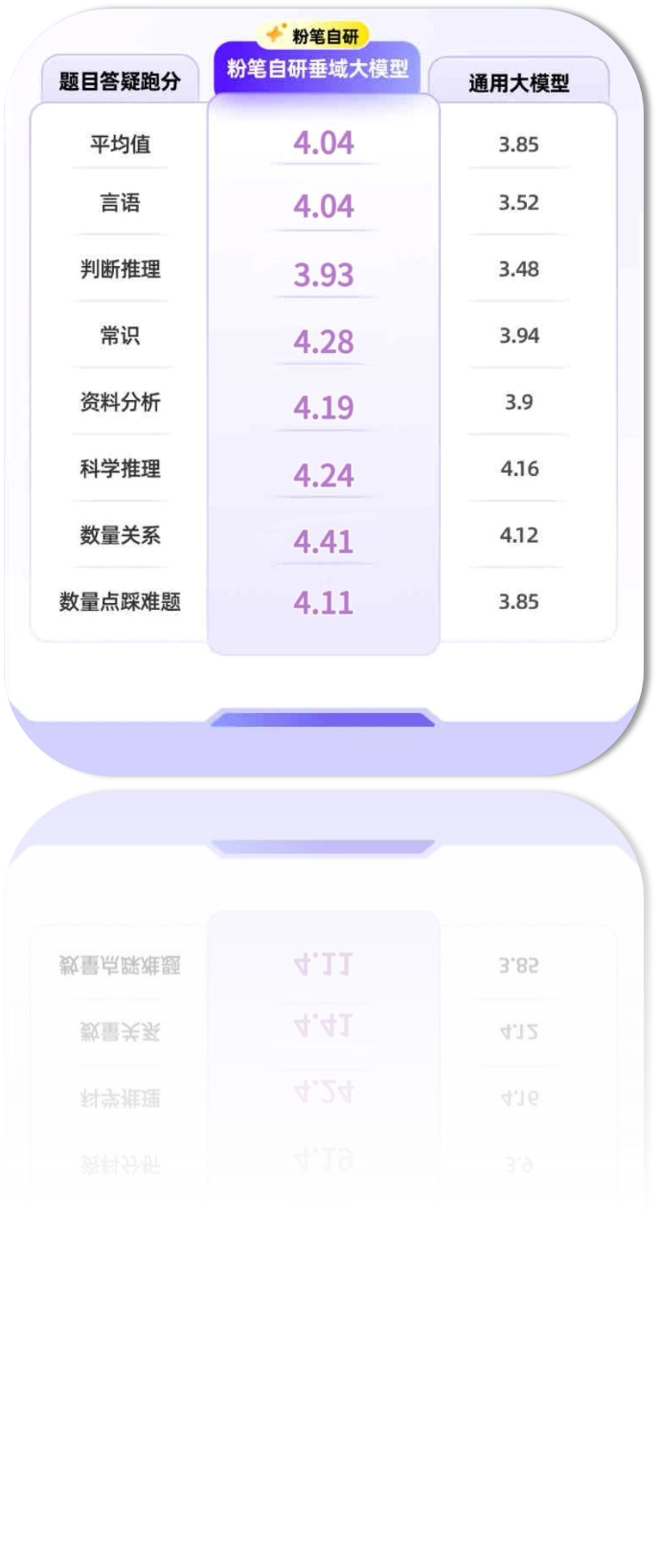 根据内部测算,粉笔垂域大模型平均评分比通用模型高出约0.2分,尤其在言语、判断推理和常识等等科目上表现更为突出。
