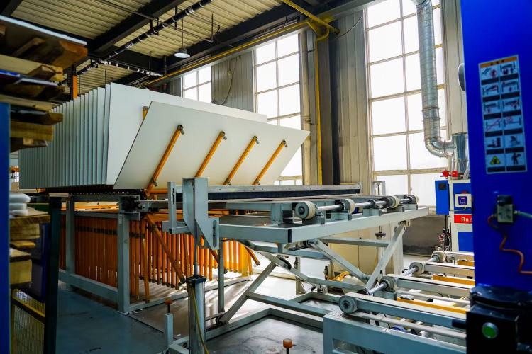 与之遥相呼应的,是千年舟临沂工厂所展现出的另一种智造张力。这座工厂专注于基板深度贴面加工,部署了十一条自动压贴生产线、一条PET生产线和两条成品检板线,以数智化系统实现对订单、工艺、产能、交付全过程的实时管控,有效缩短交付周期,提升品质。