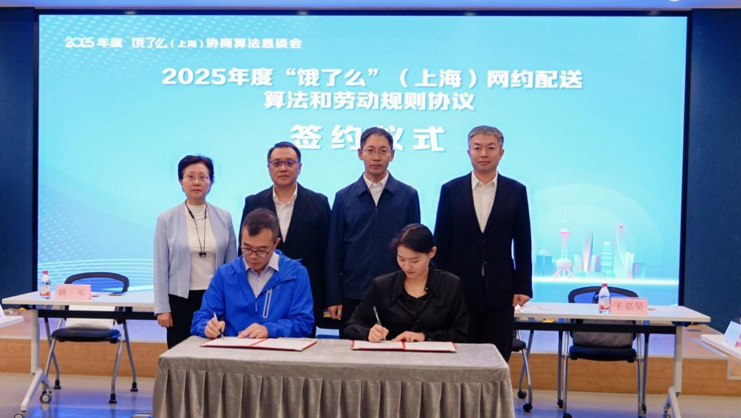 【环球网科技综合报道】4月25日,全国首份网约配送算法和劳动规则协议在上海诞生。当天,2025年度“饿了么”(上海)协商算法恳谈会召开,会上形成《2025年度“饿了么”(上海)网约配送算法和劳动规则协议》,在全国总工会、上海市总工会、普陀区总工会的共同见证下,由外卖送餐员代表与平台企业代表签字确认生效。