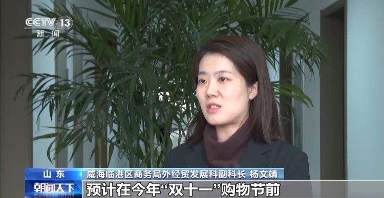 威海临港区商务局外经贸发展科副科长 杨文靖:预计在今年“双十一”购物节前可以投入运营,从威海港发出的货物大概3到5天就可以到韩国消费者手中。