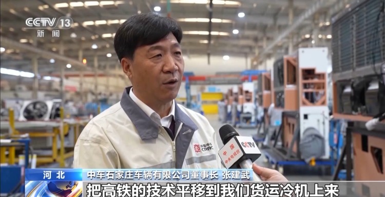 中车石家庄车辆有限公司董事长 张建武:把高铁的技术平移到货运冷机上来。冷机装备有600亿元左右的市场规模,这个市场是巨大的。整个冷链的发展对装备的需求也是非常强烈的。