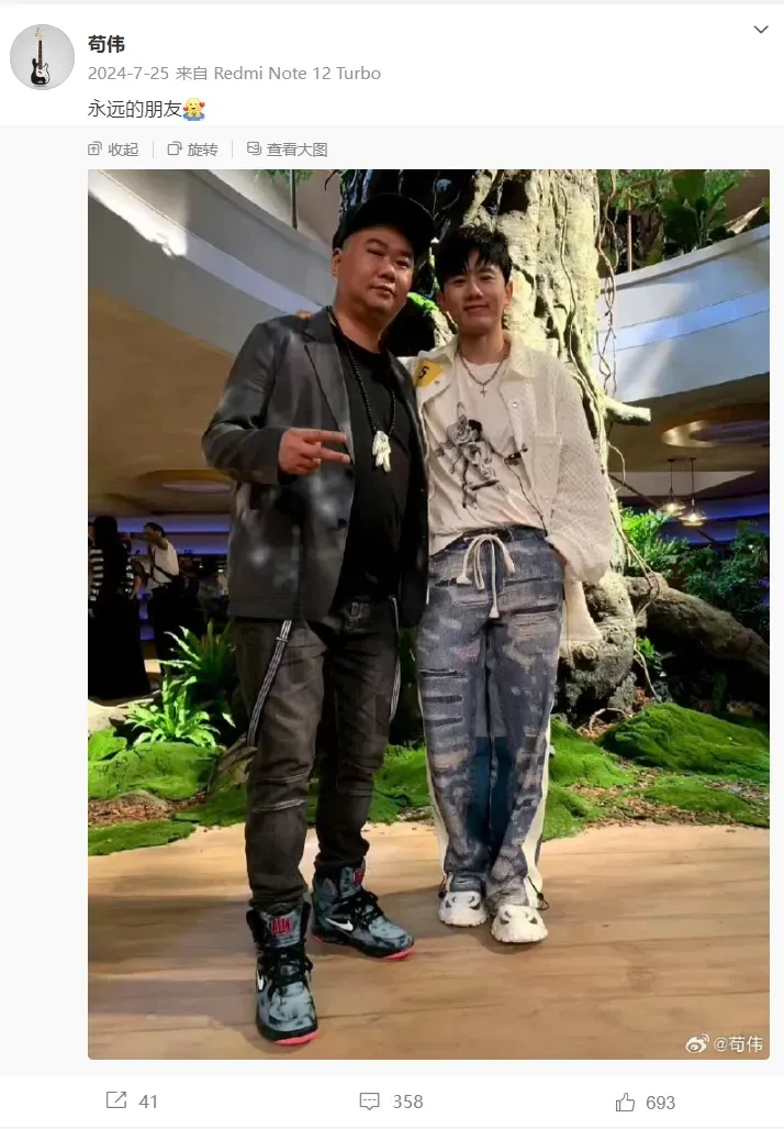 值得注意的是,苟伟微博的最后一条,停留在2024年7月25日与张杰的合影中。
