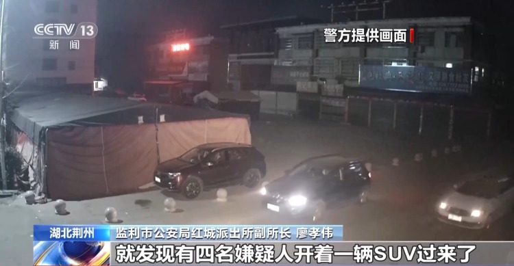 监利市公安局红城派出所副所长 廖孝伟:到了晚上十二点的时候,发现有四名嫌疑人开着一辆SUV过来,之后把车门打开看了一下。