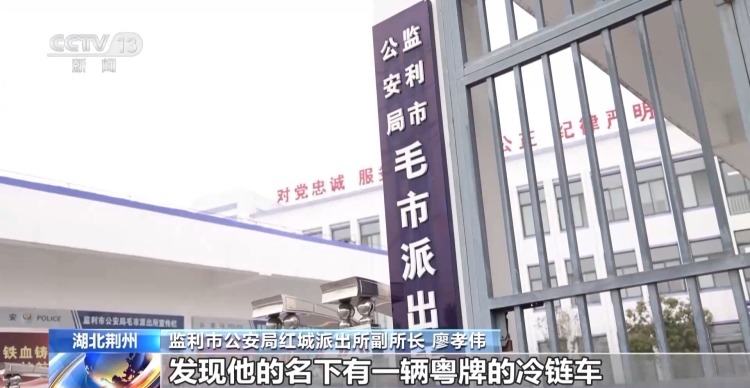 监利市公安局红城派出所副所长 廖孝伟:我们进一步对李某的车辆进行了核查,发现他的名下有一辆粤牌的冷链车,把车辆交给报警人吕某去辨认,从车的外观可以初步确定,这个车就是当时参与抢劫把他的货抢走的车辆。