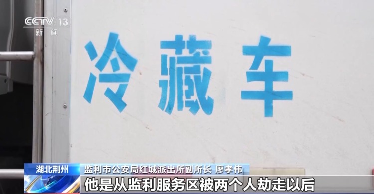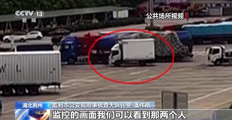 监利市公安局刑事侦查大队民警 潘伟刚:一辆车停在了服务区的停车场。随即从车上下来了两个人慢慢走近冷藏车,其中一个人直接拉开了驾驶室的门,上到了冷藏车的驾驶位上,另外一个人随即从副驾驶上到了冷藏车上。