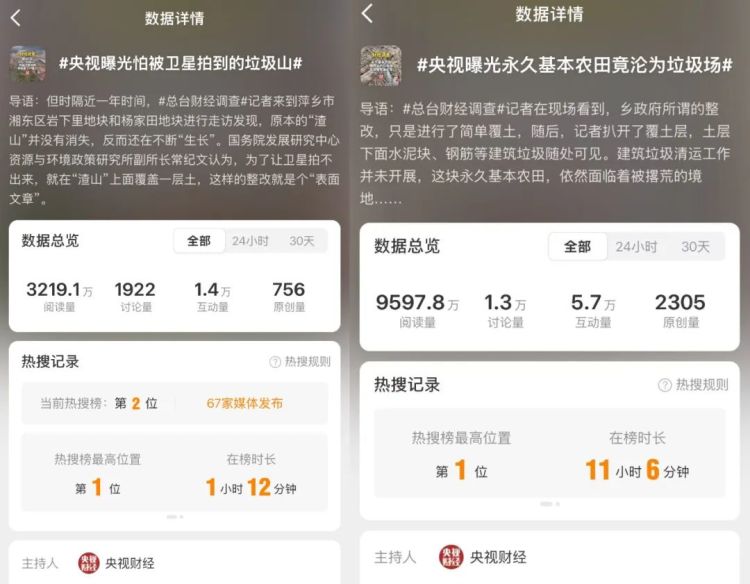 5月18日,有媒体报道反映了江西萍乡市湘东区、安源区在工业固废、建筑垃圾、生活垃圾处理方面存在问题;湖南湘潭市个别地区永久基本农田被建筑垃圾侵占、整改流于形式等问题,相关话题冲上热搜第一。