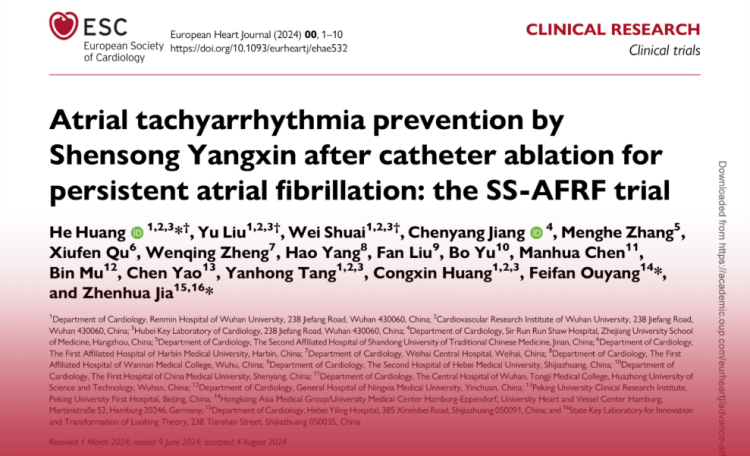 参松养心胶囊科研成果发表在国际医学顶刊《欧洲心脏杂志》