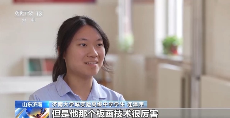 济南大学城实验高级中学学生 连泽萍:老师的板画技术很厉害。