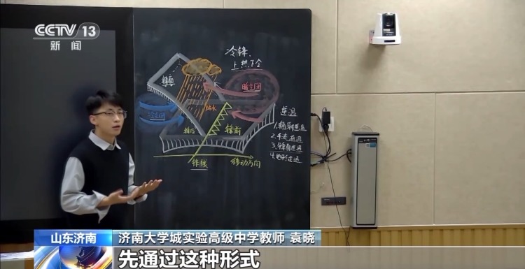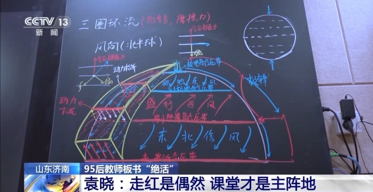 在网络上有着70多万粉丝的高中地理老师袁晓,一手出色的板书是他的“绝活儿”,这在越来越多应用多媒体教学的今天并不多见。通过手绘板书,袁晓把复杂难懂的地理知识形象化地展示给学生。众多网友留言说“舍不得擦”“堪比PPT”,还调侃他“主修美术,辅修地理”。