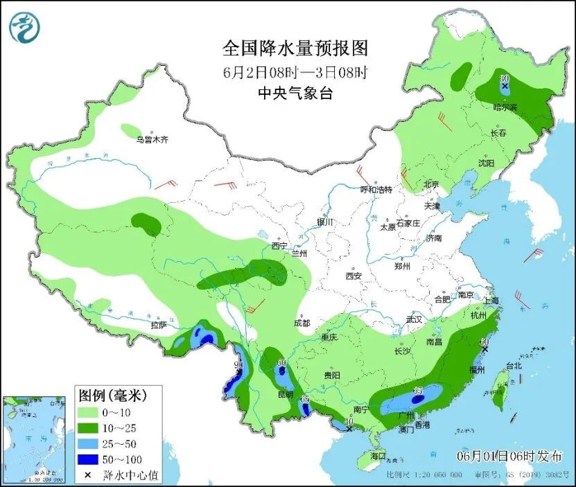 中央气象台预计,明天,江南中东部和南部、华南大部、云南大部、四川南部、西藏东南部、青海南部以及东北地区北部等地部分地区有中到大雨,其中,福建东北部、广东中部、云南西部和东南部、西藏东南部等地部分地区有暴雨。
