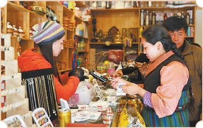 来自达都巴尼村的小伙奇林,每天都会最早一批通过樟木口岸进入中国。“你好”“这个便宜”……他的中文并不流利,但一点也不耽误做生意。球鞋、毛毯、被褥……各色商品摆满不大的店面。“中国产品质量好,价格实惠。”面对前来采购的顾客,奇林如数家珍般介绍起店里的货物。他经营的店面在樟木口岸内,生意一直很好。