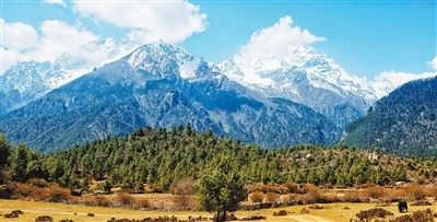在吉隆,高山雪峰和原始森林绘就一幅自然画卷。