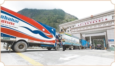 口岸两侧,总能看到大货车来来往往。货车车身和驾驶室被司机精心装扮,有的车厢上还挂着中尼两国国旗,用彩色涂料写着“中尼友谊”“好兄弟”等字样。