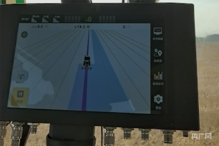 北斗导航辅助系统显示屏,显示正在进行播种的行间距和播种面积(央广网记者 刘浩 摄)
