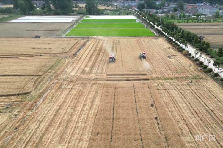 在山东省临沂市河东区,22万亩小麦进入全面收割阶段,多台大型联合收割机穿梭在麦田里,收割、脱粒、装车后的小麦被一辆辆运粮车源源不断地送进当地烘干场地,进行烘干作业。山东鲁供农场有限公司技术员朱孟浩介绍:“我们在烘干时设定烘干温度在70℃,平均每小时烘干30到40吨,烘出来的小麦和自然晾晒的小麦品质一样,仍然可以做种子和深加工,而且更容易储存。”