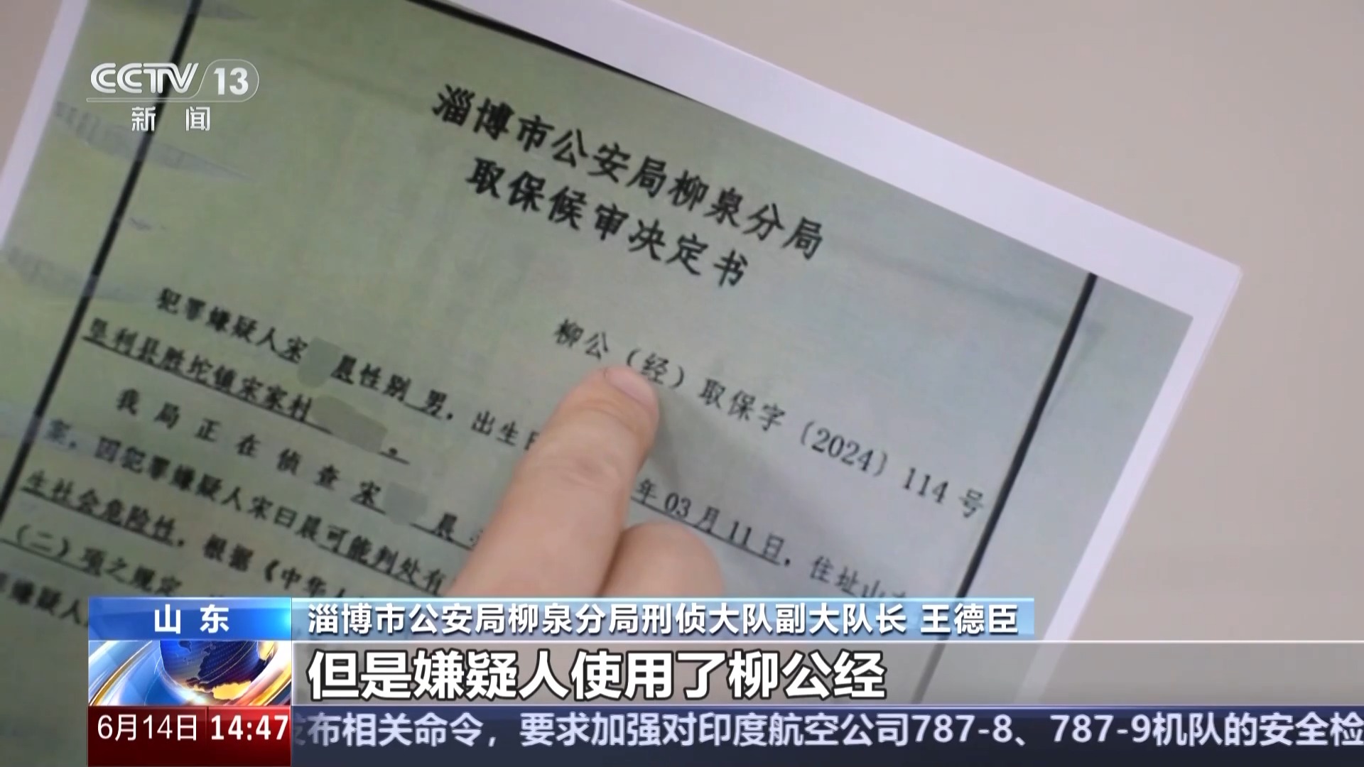 淄博市公安局柳泉分局刑侦大队副大队长 王德臣:这份法律手续看上去非常逼真,但是通过详细甄别我们发现有三处破绽,首先是这个法律手续的法律文书号,我们分局一般使用柳公刑作为这个法律文书号,但是嫌疑人使用了柳公经,这与我们正常情况不相符,第二个就是案件名称,我们一般以公司加上罪名对案件进行命名,但是这个法律文书使用了嫌疑人加罪名进行命名。