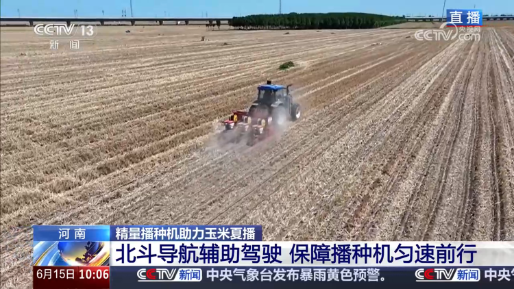 总台记者艾泽乐:这里是河南安阳滑县的一片1000亩左右的农田,身后这台北斗辅助驾驶的玉米精量播种机正在田间穿梭,而这台机器就是当地种植户今年新上的播种设备,用一句话来形容它的特点,那就是“精准而省力”。