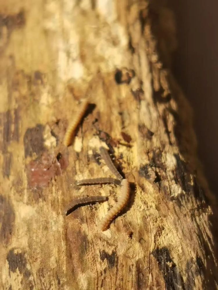 多年前的二沙岛,三只萤火虫幼虫和一只马陆在一根树枝下“玩耍”