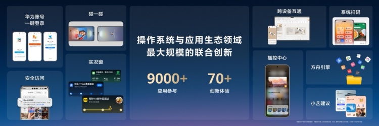 如今超800万开发者在鸿蒙生态发挥自己的光与热,3万+鸿蒙应用和元服务在全速开发、积极更新,共同促使着日新月异、越来越好用易用的鸿蒙生态体验。有9000多个应用积极拥抱鸿蒙创新特性,如支持华为账号一键登录、碰一碰、实况窗、安全访问、系统扫码等,开发者、生态伙伴与鸿蒙系统一起,通过持续创新给用户带来更多好用的体验。