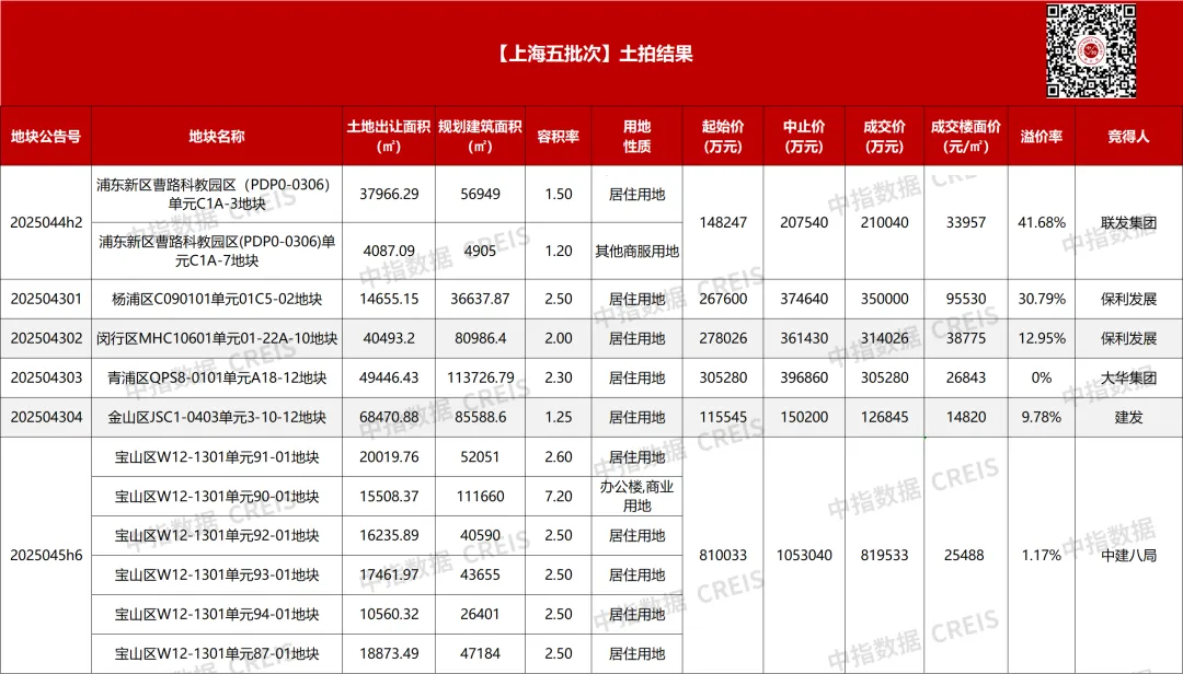 本批次地块中唯一一宗位于内环的地块杨浦区C090101单元01C5-02地块吸引六位竞买人参与竞拍,