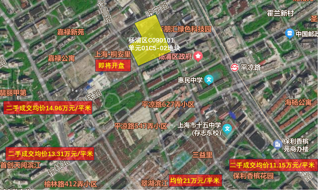 01C5-02地块的楼板价超过了一路之隔的杨浦区平凉社区01B4-04地块(平凉街道19街坊),刷新杨浦滨江板块楼板价的新纪录,同时也是杨浦区住宅地块的新单价纪录。01B4-04地块楼板价95002元/平方米,容积率仅有1.35,建成后的项目为桐安里。