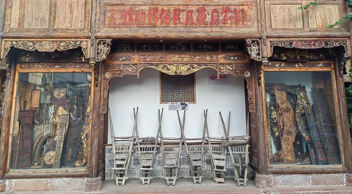 “英勇社区,具有诗情画意。而龚村,则是治愈‘慢’生活的港湾。”余璐说,作为省级乡村振兴示范村,龚村文旅业态丰富。非遗魅力闪耀,床花博物馆内,楠木床屏雕工精美,花鸟鱼虫、神话传说栩栩如生;非遗传承人杨滔工作室里,孩子们专注体验金丝楠木葫芦雕刻,传统技艺焕发新生。创意体验妙趣,“寻隐”酒店传递禅意书法之静;荷塘边布包拓染让自然形态跃然布上;漆扇体验区,素白扇面浸入染缸幻化独特花纹;面部彩绘让荷花在笑靥“盛开”。幸福园、梦橙花园酒店、青瓦房、繁花庭等特色民宿餐饮集群,以及培培农业蓝莓园的采摘乐趣,共同编织悠闲舒适的度假时光。