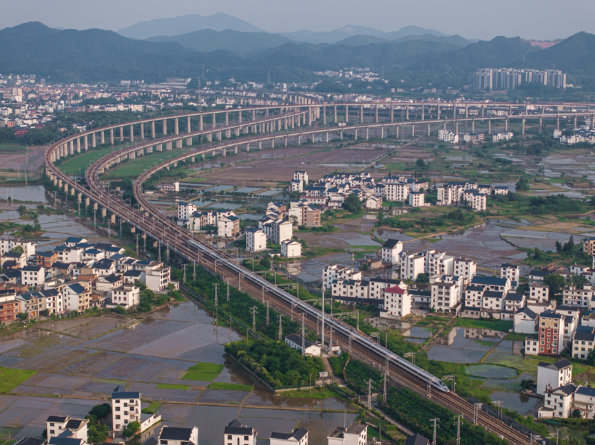 合福高铁的发展,是新时代中国高铁发展的一个缩影。最美合福高铁是纵贯三省的“黄金纽带”,以每日超70对列车的运行密度,承载着人才、资本、技术的洪流,构建起“高铁+产业”“高铁+文旅”“高铁+乡村振兴”融合发展示范带,持续为沿线城乡高质量发展注入强劲动力,在绿水青山间铺就一条共同富裕的康庄大道。十年驰骋,合福高铁的故事还在继续,它正以更加矫健的身姿,驶向更加美好的未来。