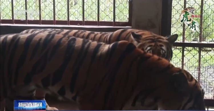 梅花山华南虎繁育研究所兽医师 陈腾腾:我们会把它们关在相邻的笼舍,让它们先熟悉彼此的气味,相互交流,之后安排它们进行串笼,在接近母虎发情的时候,我们就会尝试把它们进行合笼,在这个过程中也要密切监控它,防止它们打斗。