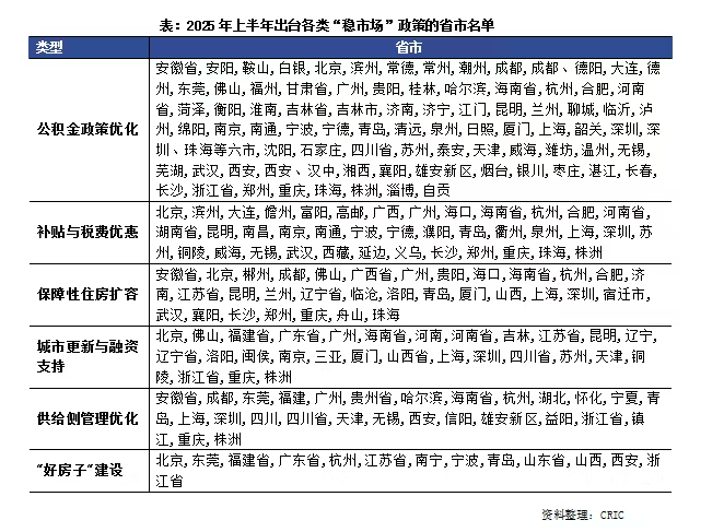 2025年上半年,中央和相关部门持续发声释放楼市政策利好,并落地具体举措,涵盖去库存、扩需求、新模式、化风险等方面,例如专项债收购存量闲置土地、收购存量商品房,加力实施城中村改造和降低5年期以上LPR,推进“好房子”建设等。