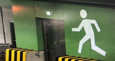 认准门上的“逃生门”标识和推门符号,用力向前推开,进去找到逃生通道。进入后就到了相对安全的横向通道,需立刻跟着通道里明亮的绿色疏散指示灯离开隧道。