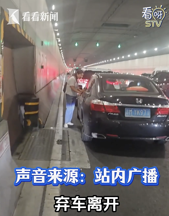 “隧道内发生火情,请将车辆停在右侧车道后,弃车离开,就近进入安全通道。”