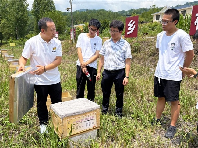 在当地龙头企业,实践团队深入学习了“公司+村集体经济+农户”三级托管模式和农户的“四个一”立体养殖模式。这种创新模式有效整合了企业、村集体和农户的资源,带动农户在家门口就业增收。团队成员与企业负责人、养蜂农户深入交流,详细记录这一模式的运作机制和实际成效,为今后的创新创业积累宝贵经验。