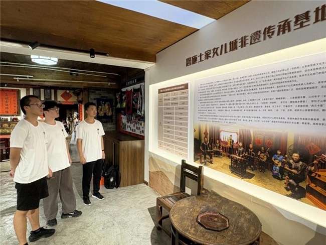 为深入挖掘恩施文化旅游资源,实践团队走进湖北恩施女儿城,开展非遗文化调研。在非遗传承基地,团队成员了解了土家族摆手舞、西兰卡普等非遗项目,认识到这些文化资源不仅具有宝贵的历史价值,更具备巨大的开发潜力。通过走访当地商户、与非遗传承人交流,团队深入了解了恩施女儿城文旅融合的发展现状与创新实践。