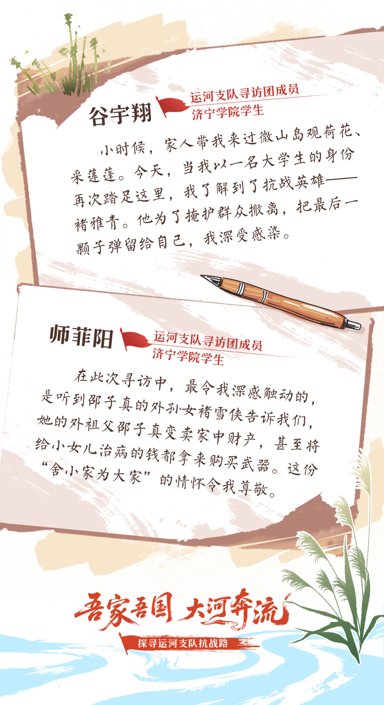 邵子真没有被击垮,这位始终心怀家国大义的抗日志士,决心重建队伍。“外祖父从来没向困难低过头,他说,只要还有一口气,就不能让抗日的火灭了。”邵子真的外孙女褚雪侠告诉寻访团,外祖父曾三次自发组织抗日队伍,追随者众多,早就被日寇视为眼中钉,就连家人也被日寇不断张榜悬赏缉拿,时刻受到生命威胁。“撤出微山岛后,他回到家乡,把家中值钱的物品悉数变卖,就连我小姨看病的钱也被他拿了出来,购置了12条步枪。一个月后,‘运河支队农民大队’正式组建,被打散的战士、爱国村民纷纷加入,这支在绝境中重生的队伍,迅速成为微山湖地区抗日的新力量。”