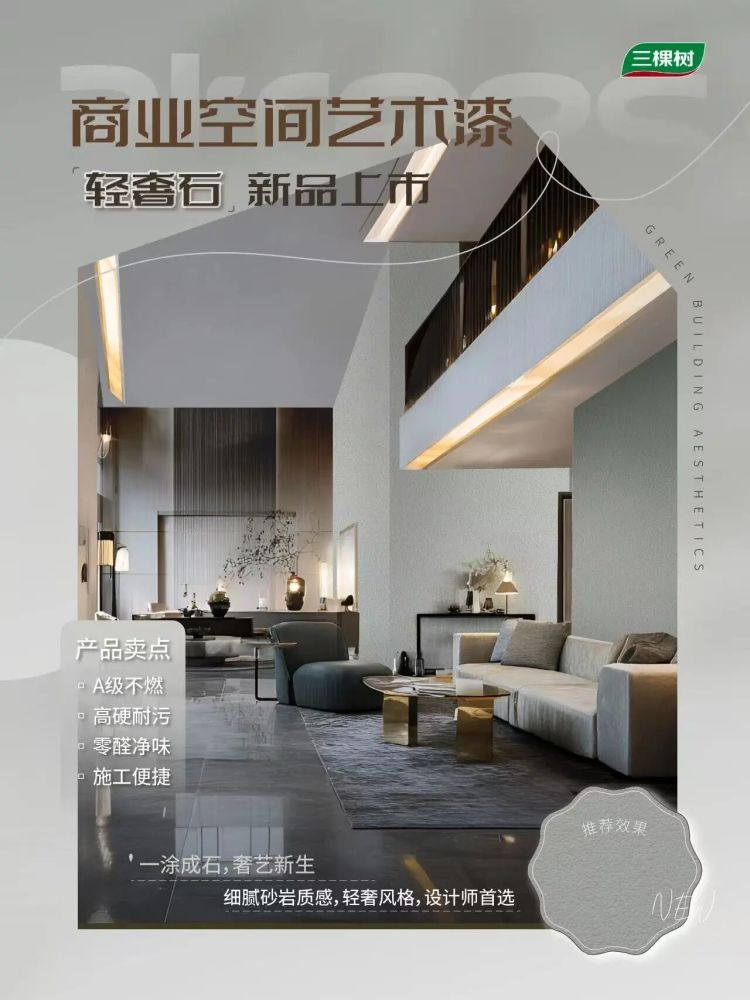三棵树商业空间艺术漆,以前沿设计理念与匠心,打造商业空间美学典范,树立行业品质标杆。未来,三棵树将以更优质的产品和更完善的服务,为更多商业空间绘就美学新篇。