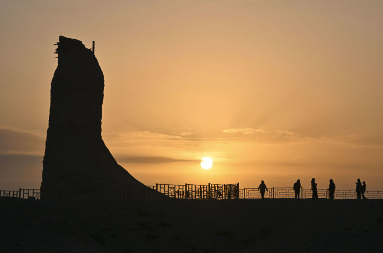 “克孜尔尕哈”意为“红色哨卡”。夕阳下,这座汉代军事设施的夯土墙体被映照得棱角分明,泛着淡淡的金红色。“站在这里,仿佛看到了当年的烽火传讯。”一名游客感慨地说。