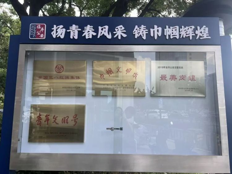 岗亭边的荣誉橱窗里,挂着四块女子岗从2000至今获得过的重要荣誉奖牌。