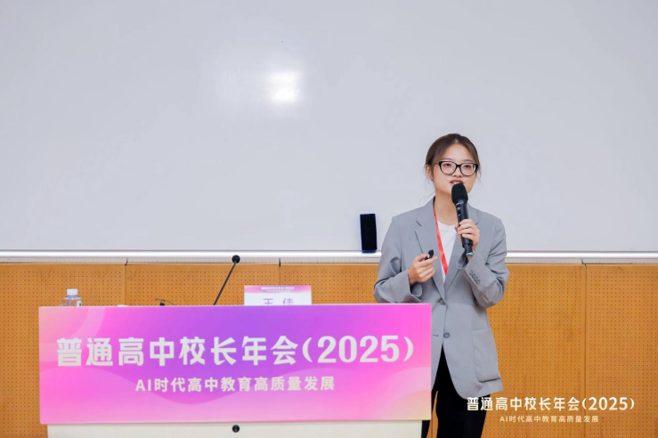 海亮科技是此次年会论坛中为数不多的企业代表之一,产品专家王佳在《AI赋能:高中教育AI应用场景的创新与实践》分论坛中做数字化实践案例分享,从课堂教学、学生成长、中台支撑三个维度,介绍了海亮科技如何用AI助力县域学校教育教学质量提升、学校管理升维,吸引了众多校长、专家对海亮科技“教育+AI”方案的关注与肯定。