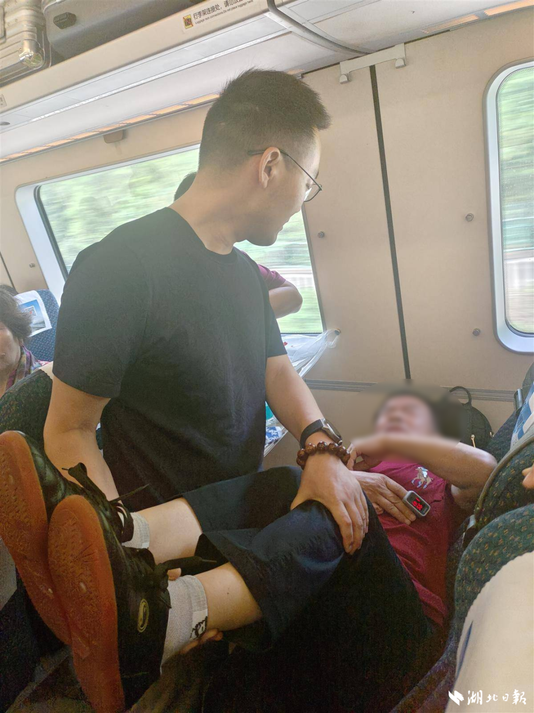 接过高铁乘务员递来的急救包