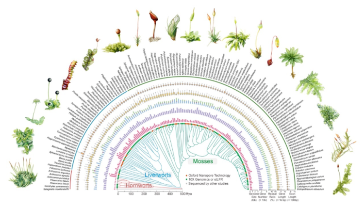 科研团队对覆盖47个苔藓植物目级代表的123个物种(包括苔类、藓类和角苔类)进行了高质量的基因组测序,并建立了全球首个苔藓“超级泛基因组”平台,相当于为苔藓家族搭建了一个前所未有的“基因图书馆”,填补了陆生植物谱系中的巨大空白。