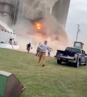 【环球网报道】据《今日美国报》报道,当地时间15日,美国伊利诺伊州一个储藏有180万磅(约816吨)大豆的粮仓轰然倒塌,豆粒喷涌而出,卷起漫天尘埃,迫使周围的人仓皇逃离。