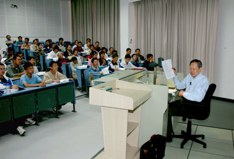 杨振宁给本科生上课。(清华大学供图)